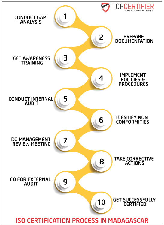 TopCertifier is an internationally recognized ISO, CMMI, SOC, HACCP, PCI DSS, and VAPT Certification Consulting Company in Madagascar. We are present in over 50+ countries with more than 4500+ projects. ISO Certification in Madagascar acts as a seal of authenticity that ensures credibility to the companies in the eyes of public. Our Specialized team of ISO Consultants and Auditors in Madagascar make the whole process Simpler, Faster, and Affordable with comprehensive and definitive solutions.